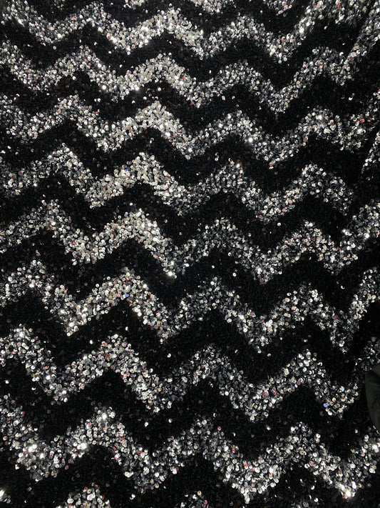 Paiete pe suport de catifea, model ZigZag, Negru-Argintiu