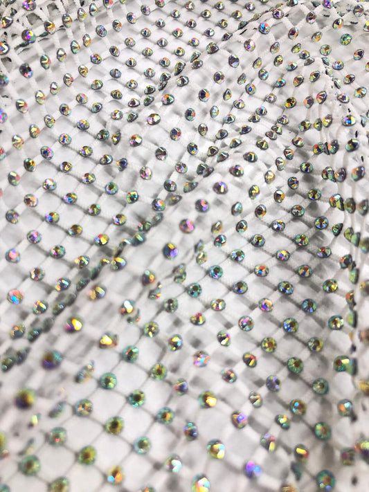 Plasa alba cu strasuri multicolore