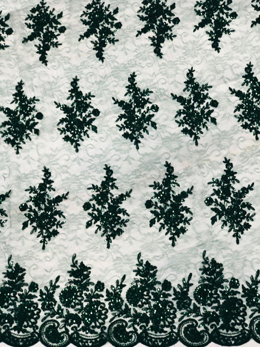 Tulle brodat, accesorizat cu paiete, Verde