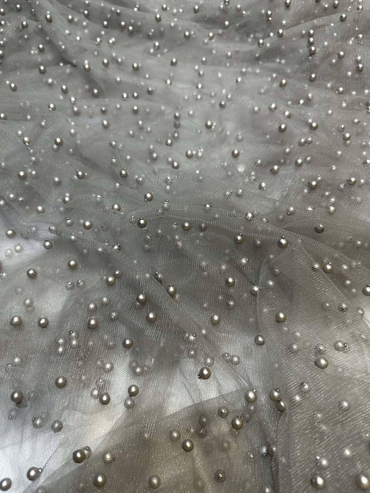 Tulle accesorizat, plin cu perle, Gri