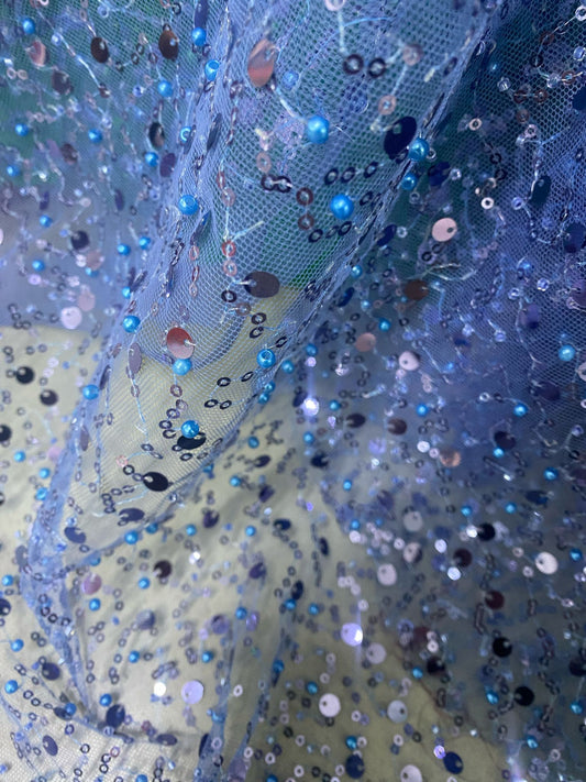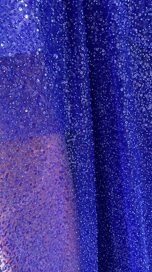 Tulle accesorizat cu paiete si margele mici si dese , Albastru Royal - MODEL SMALl - CUPON DISPONIBIL 1M