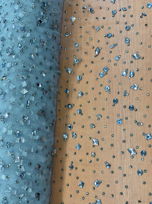 Tulle accesorizat cu paiete si margele , Blue Mint - MODEL BIG
