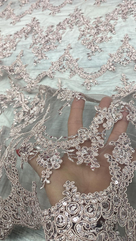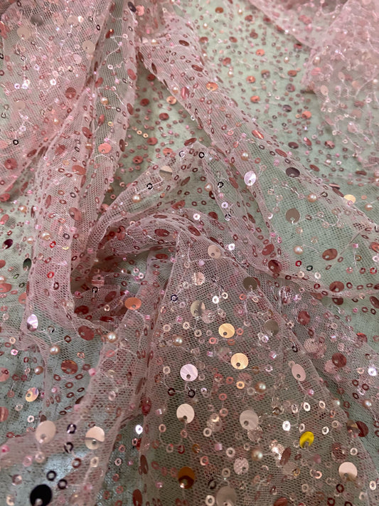 Tulle brodat, accesorizat cu paiete, Roz
