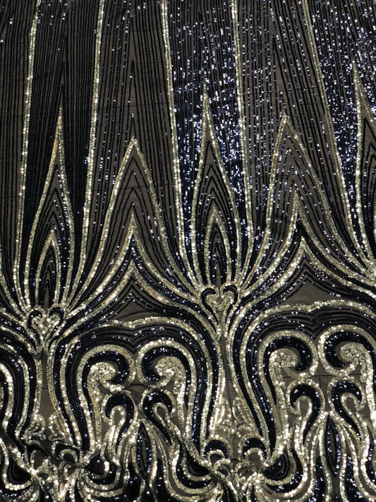Tulle bi-elastic cu paiete aurii si argintii