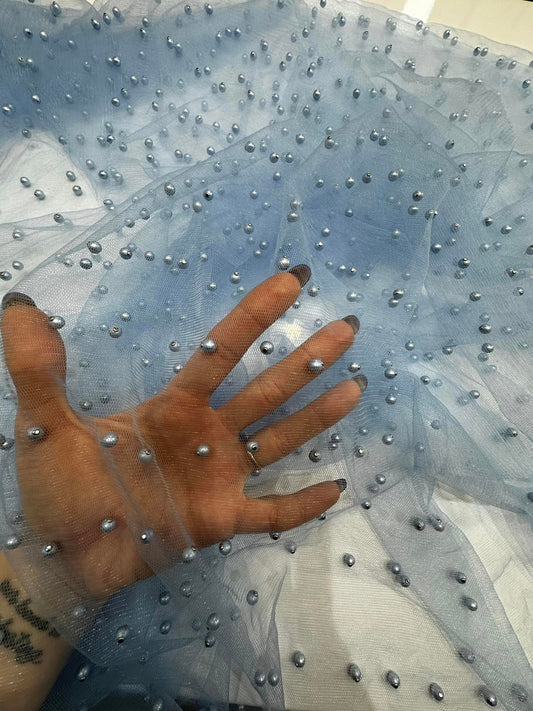 Tulle accesorizat, plin cu perle, Baby-Blue