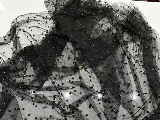 Tulle accesorizat, plin cu perle, Negru