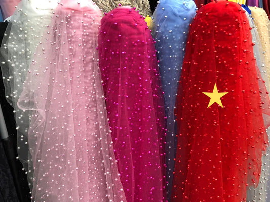 Tulle accesorizat, plin cu perle, Rosu