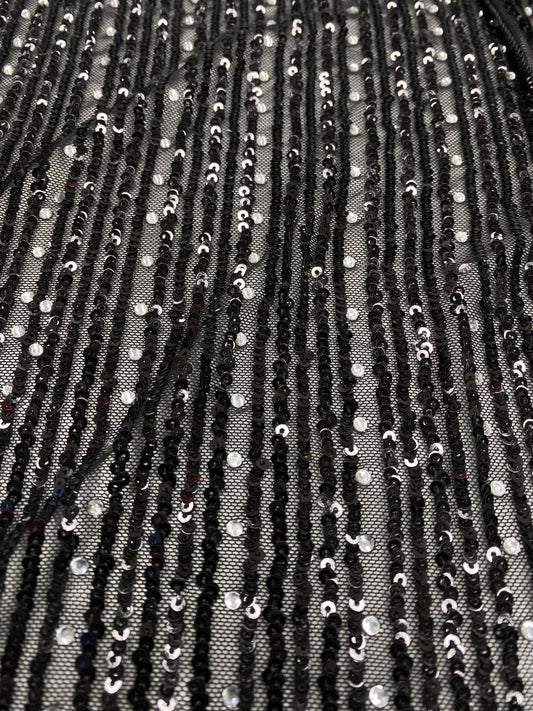 Tulle Bi-elastic cu strasuri si paiete, Negru