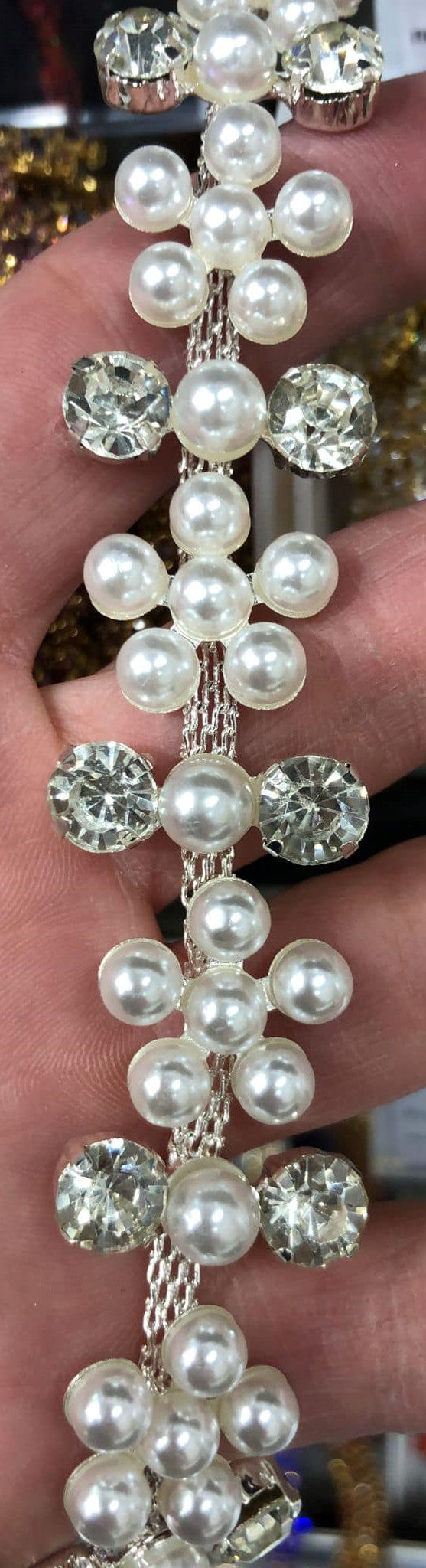 Aplicatie cu strasuri si perle pe suport metalic , model floricele