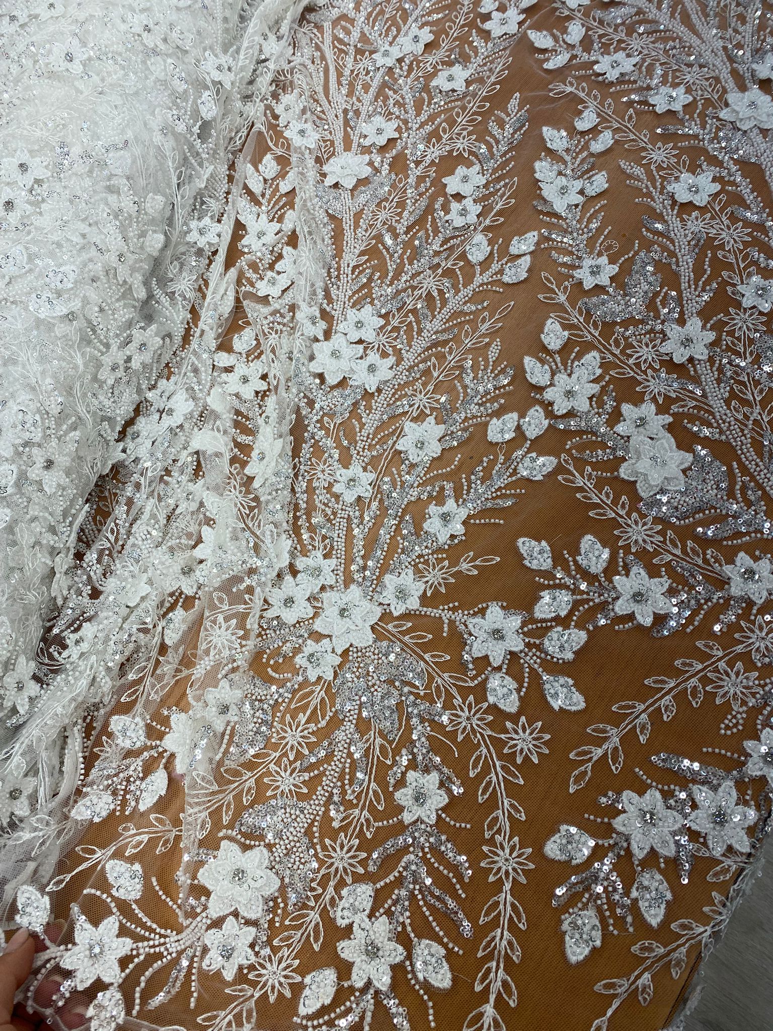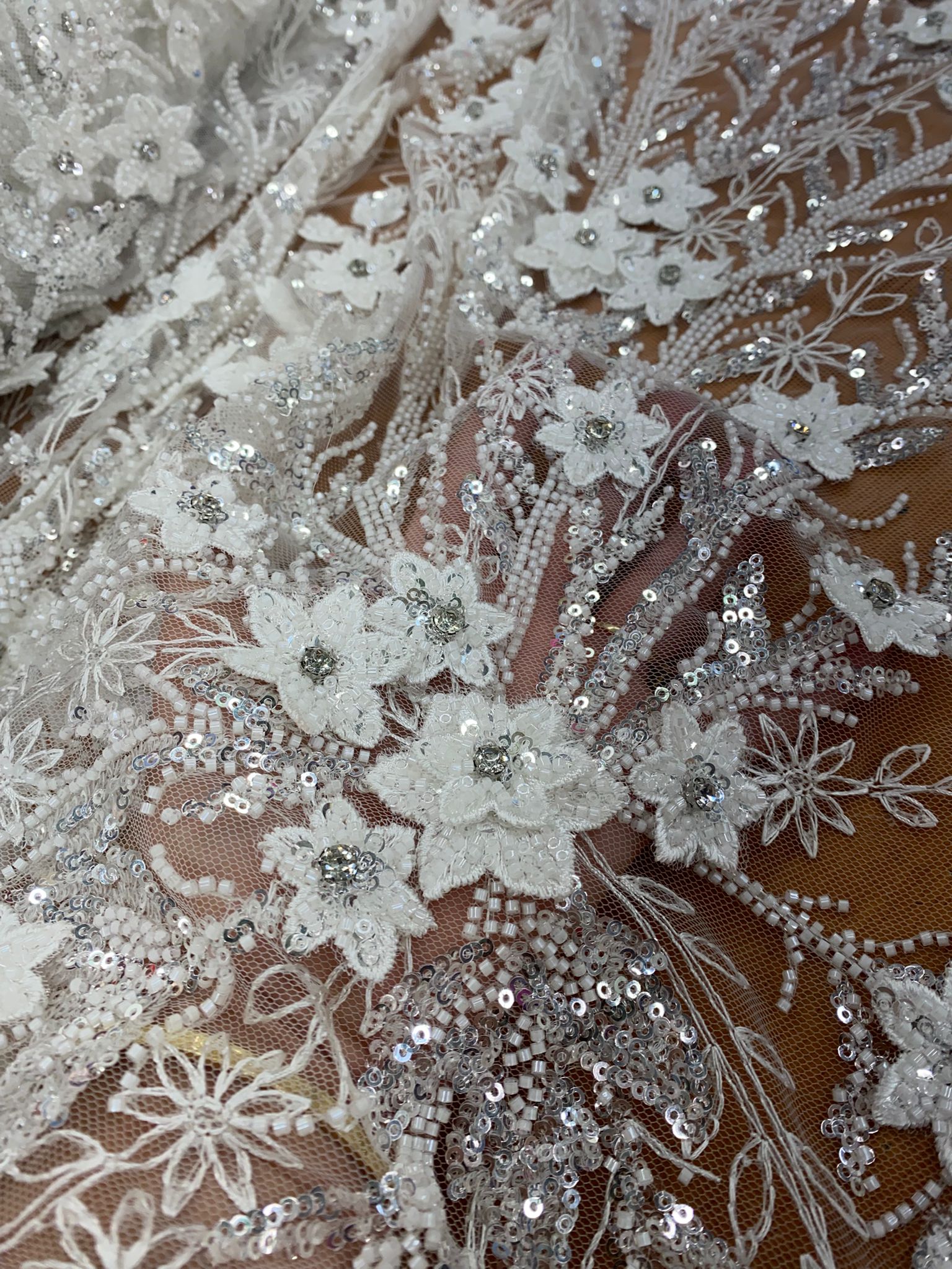 Broderie accesorizata cu paiete si margele ,Alb - MODEL BIA