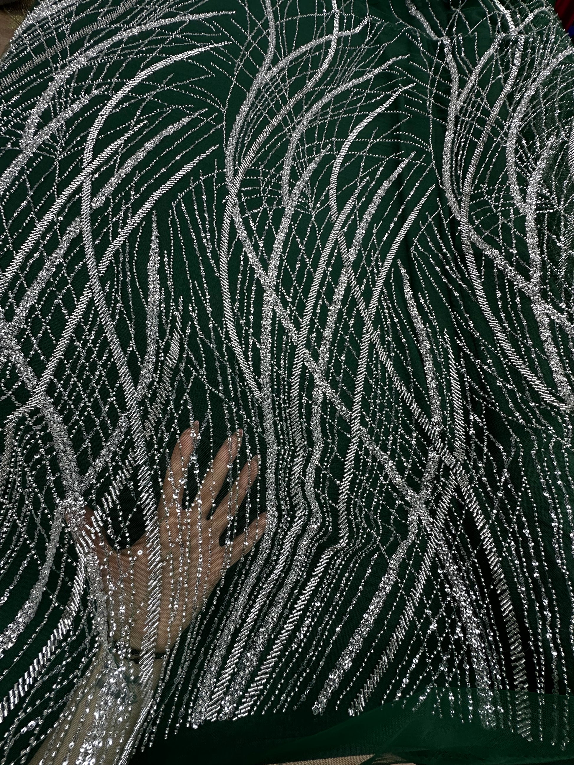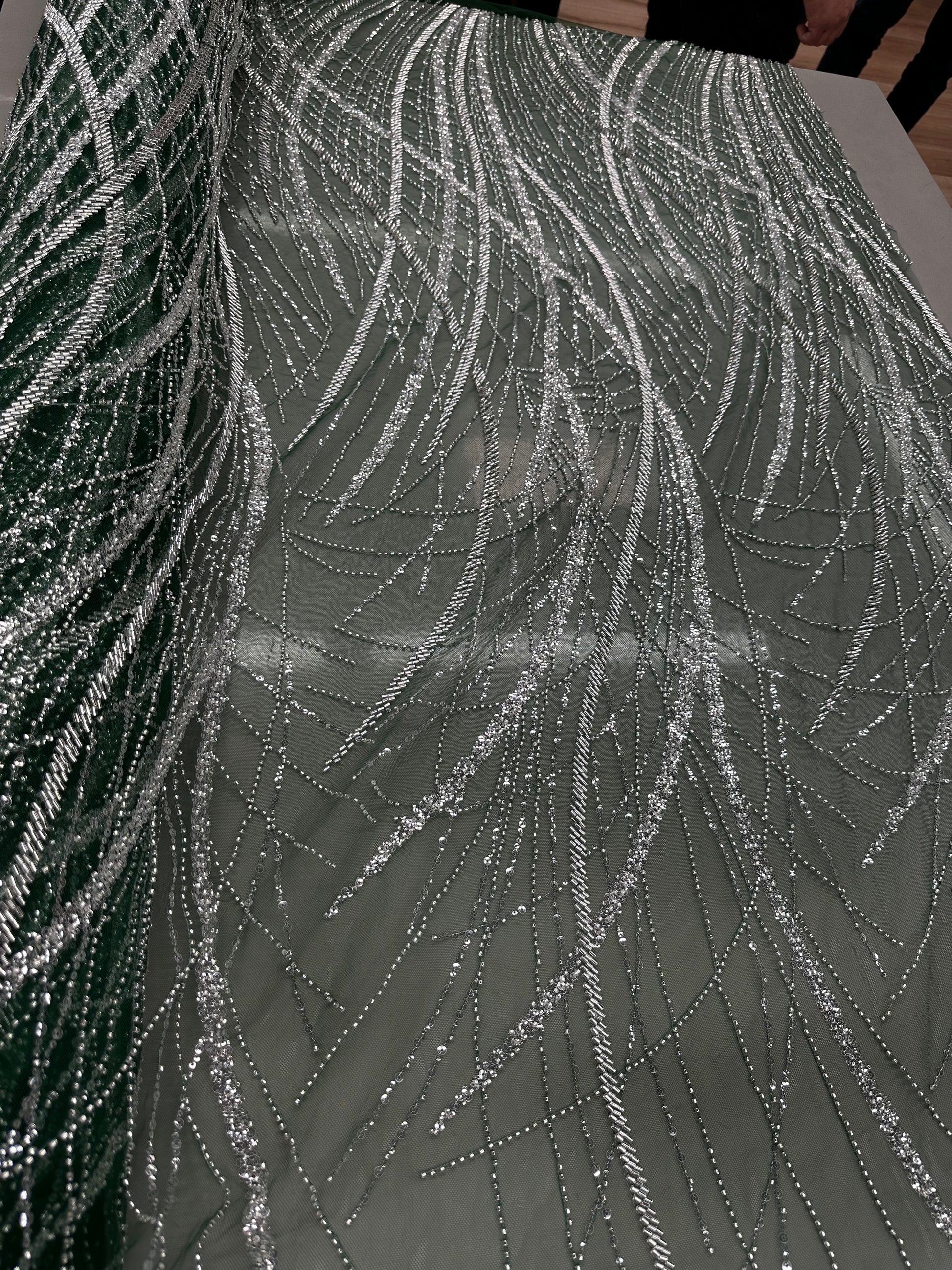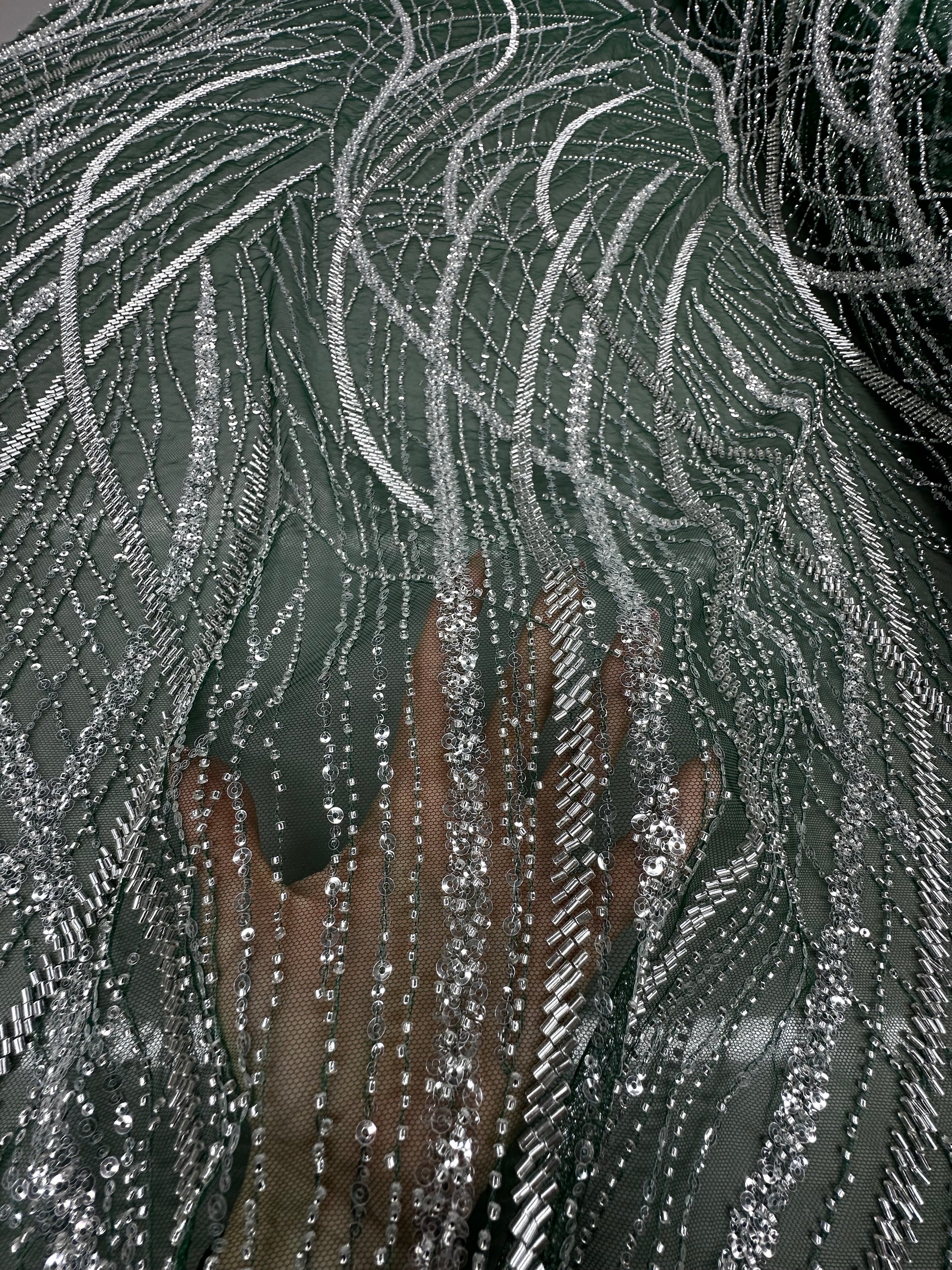 Broderie accesorizata cu paiete si margele argintii, pe tulle verde / MODEL DAMLA