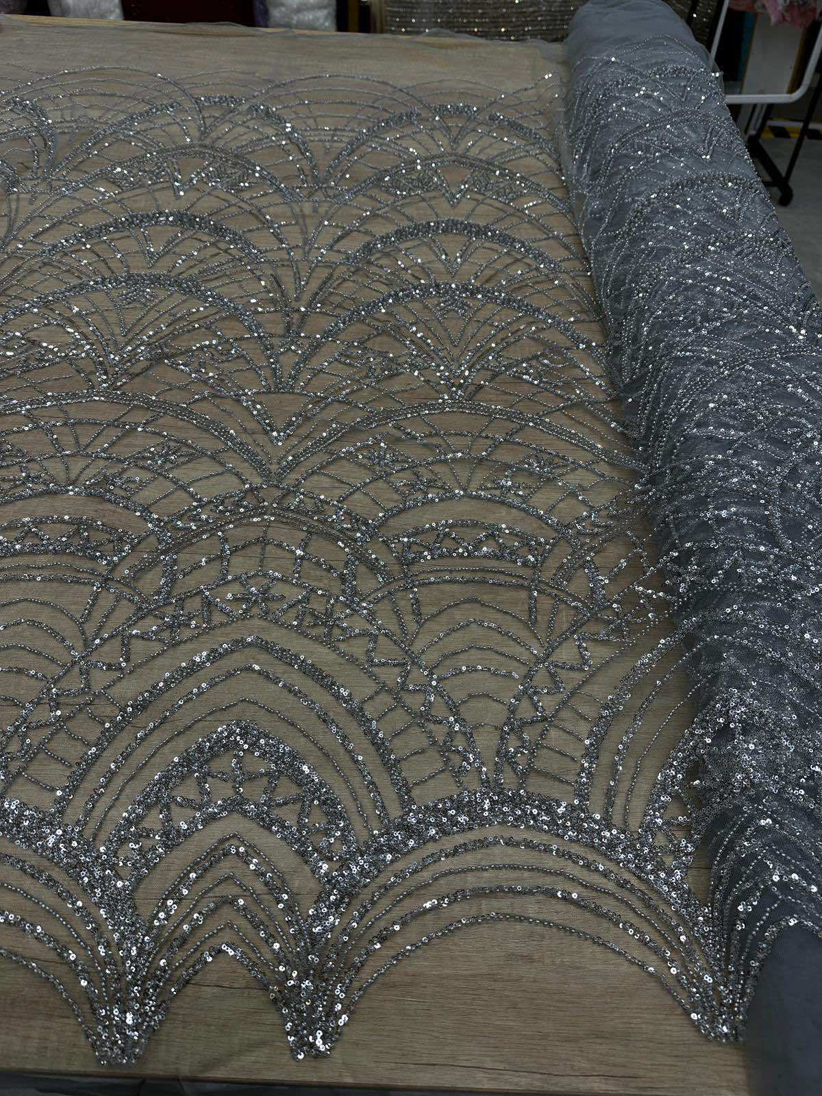 Broderie accesorizata cu paiete si margele, Argintiu - MODEL DELLY