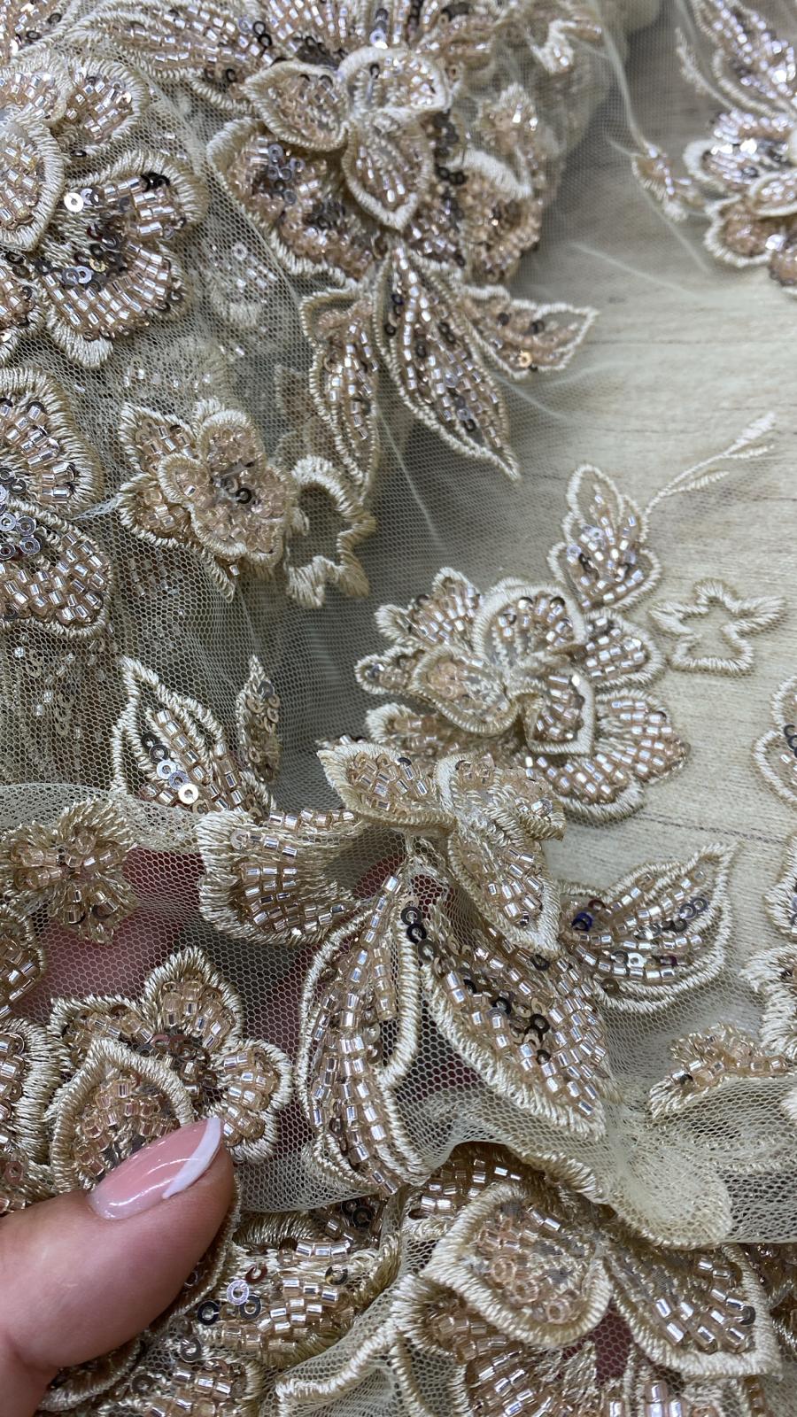 Broderie accesorizata , model floral , bej-auriu - MODEL RANIA