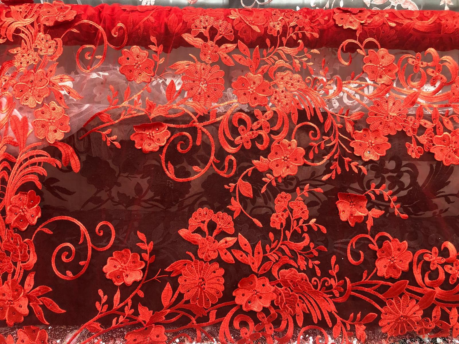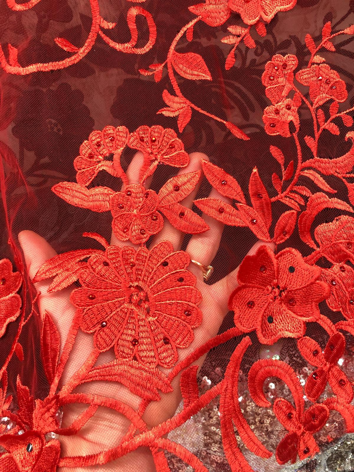 Broderie pe tulle cu flori 3D , Rosu / MODEL ALARA
