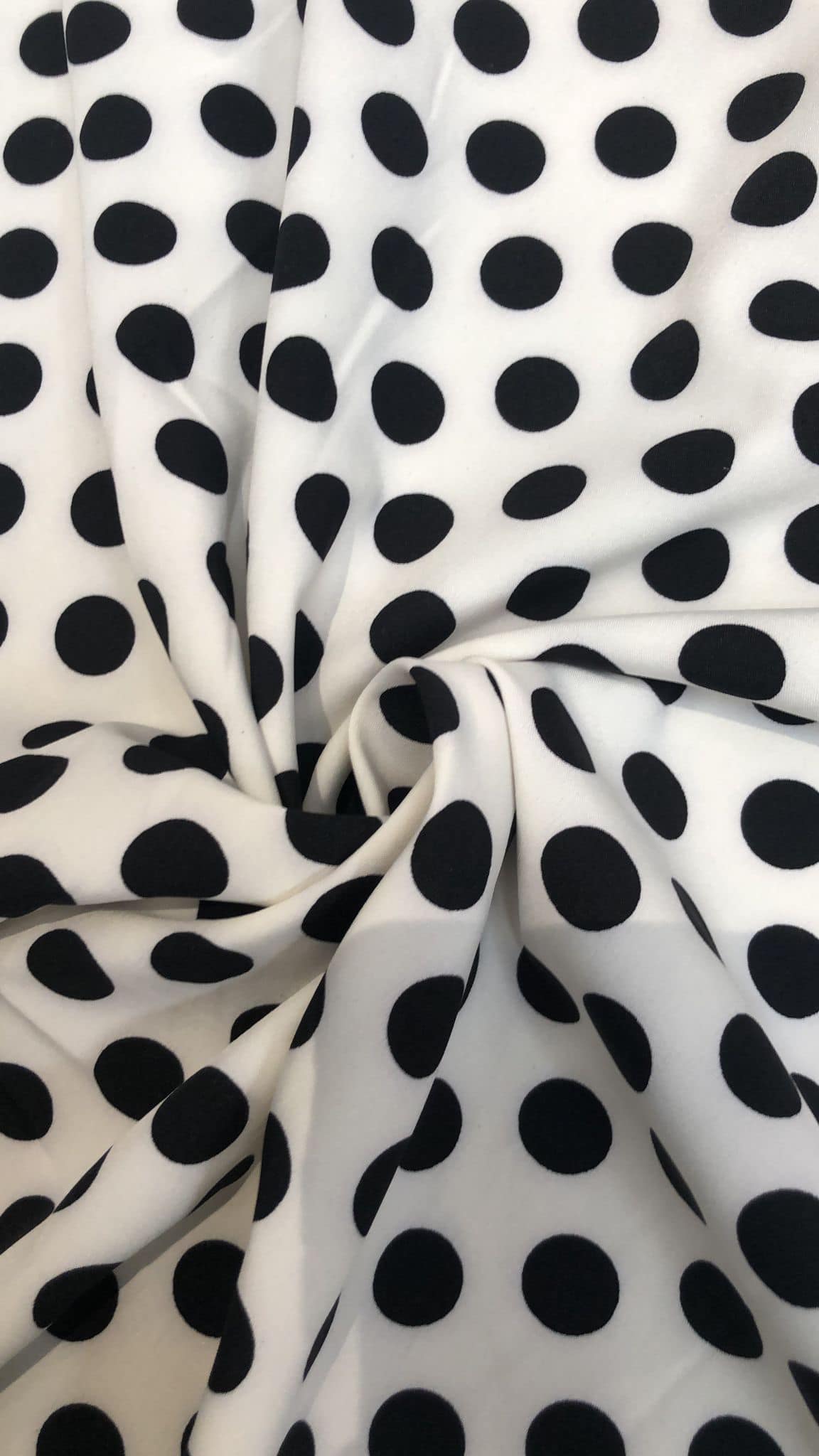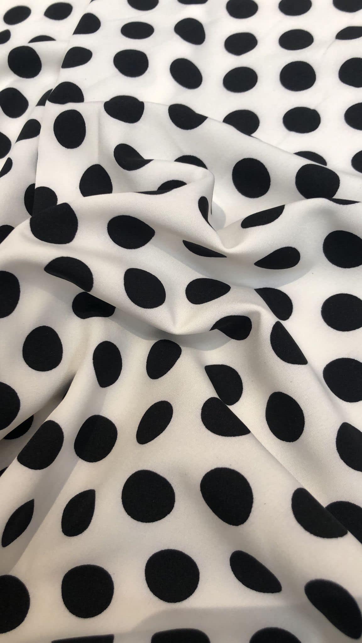Matase sintetica alba , imprimata cu buline negre