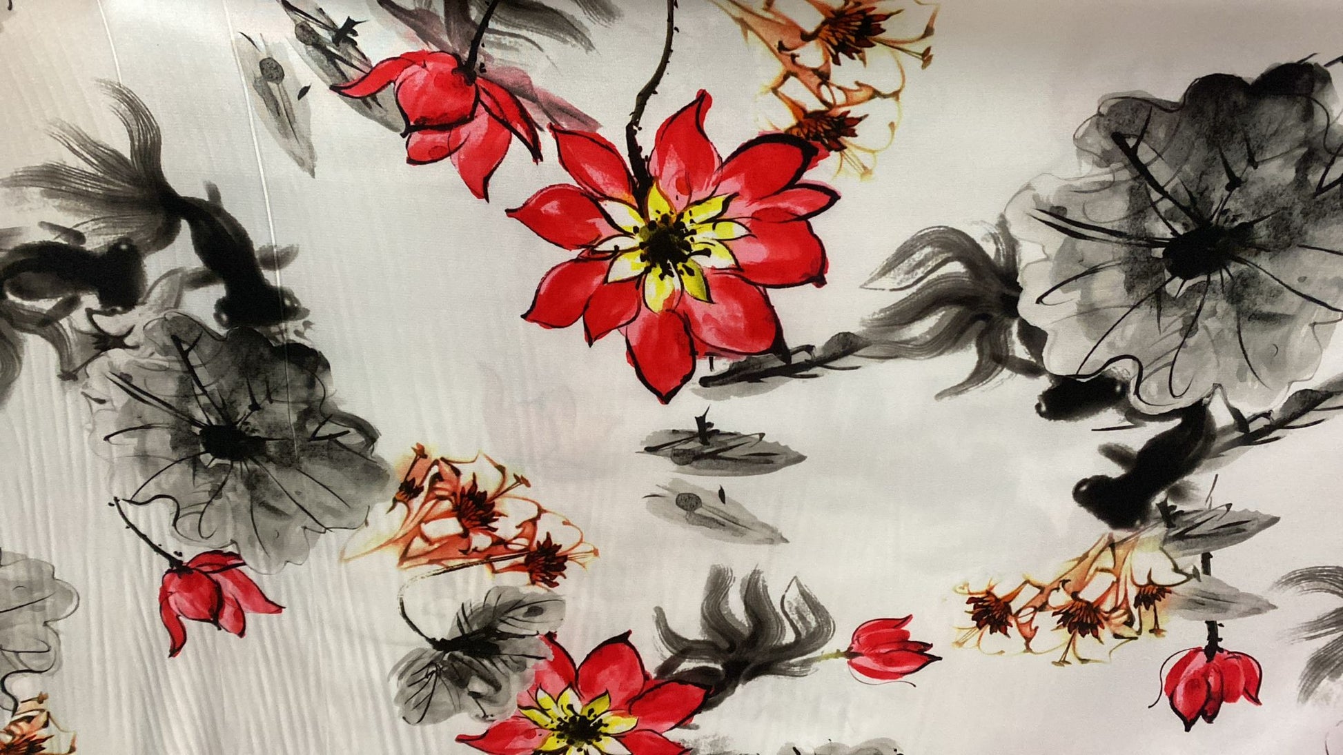Matase sinetica , imprimata cu floricele - MODEL SILKA 1