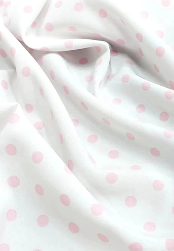 - Matase sintetica alba imprimata cu buline roz