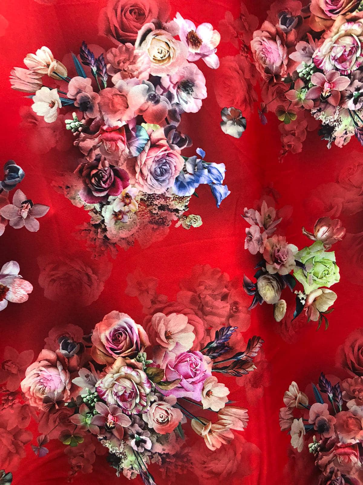 - Megan Crep , imprimat cu floricele , Rosu