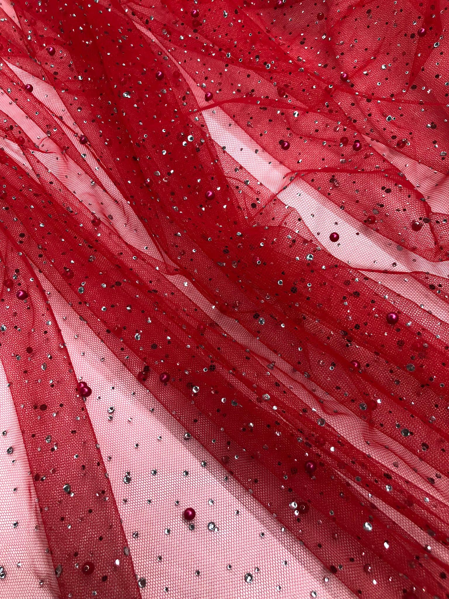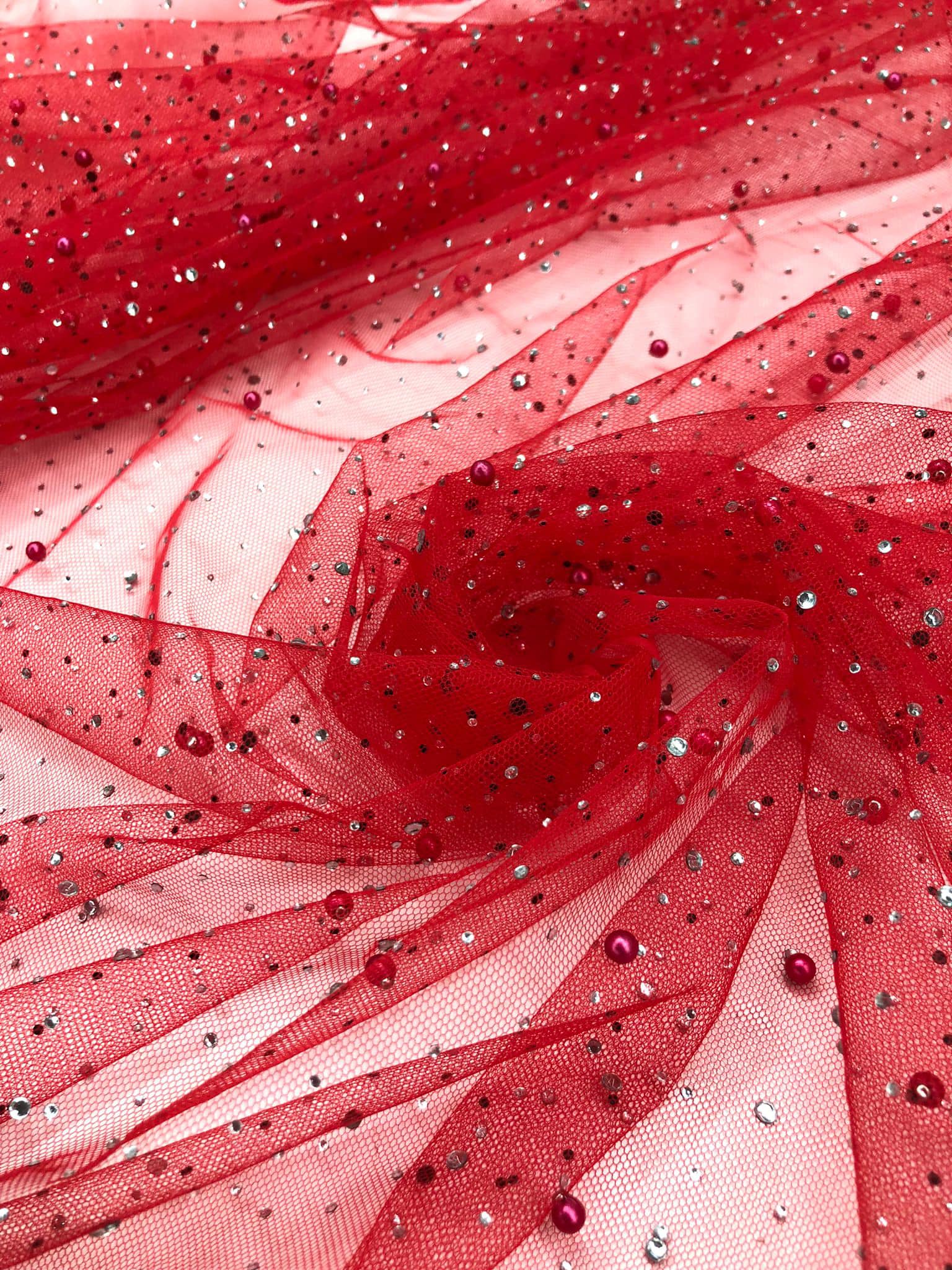 - Tulle accesorizat cu strasuri si perle , Rosu