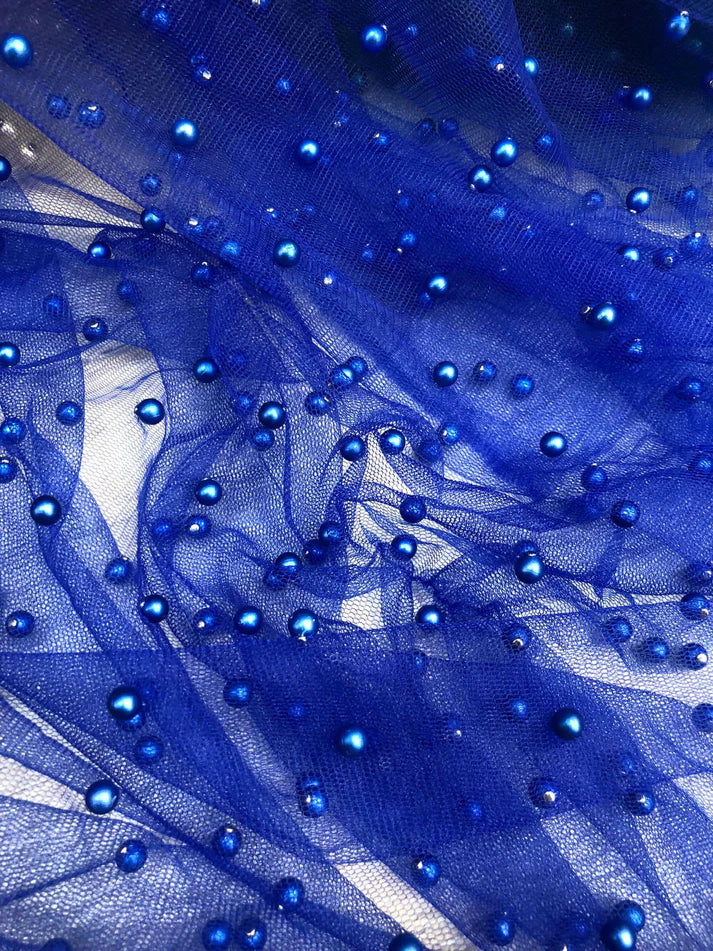 Tulle accesorizat, plin cu perle, Albastru-royal