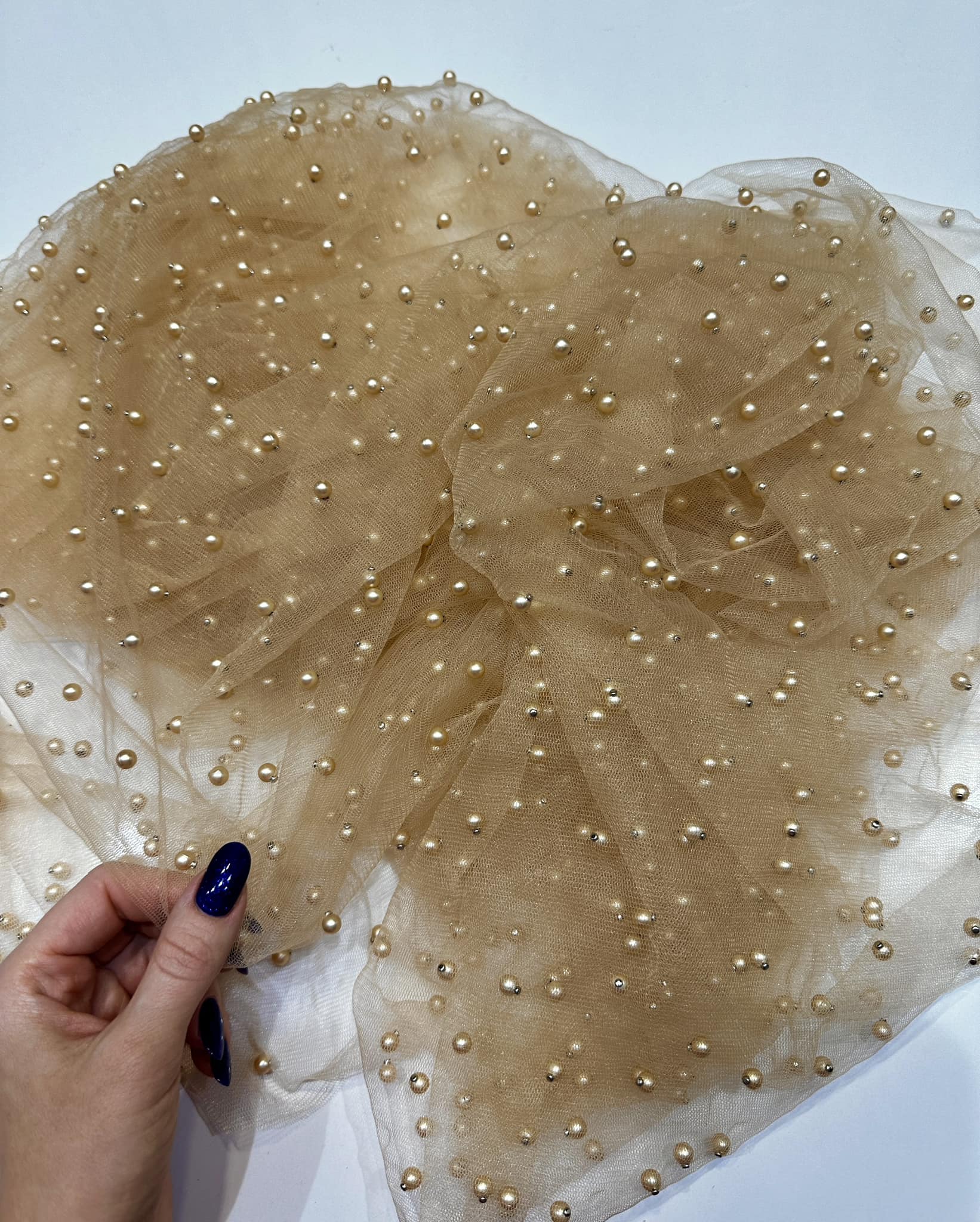Tulle accesorizat, plin cu perle, Bej-Auriu