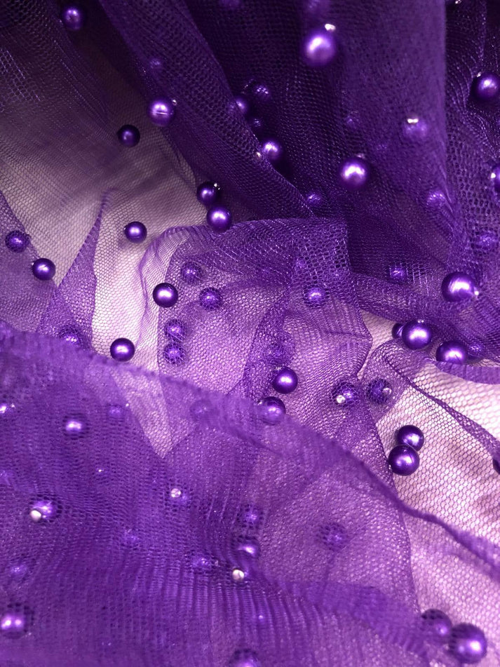 Tulle accesorizat, plin cu perle , Mov
