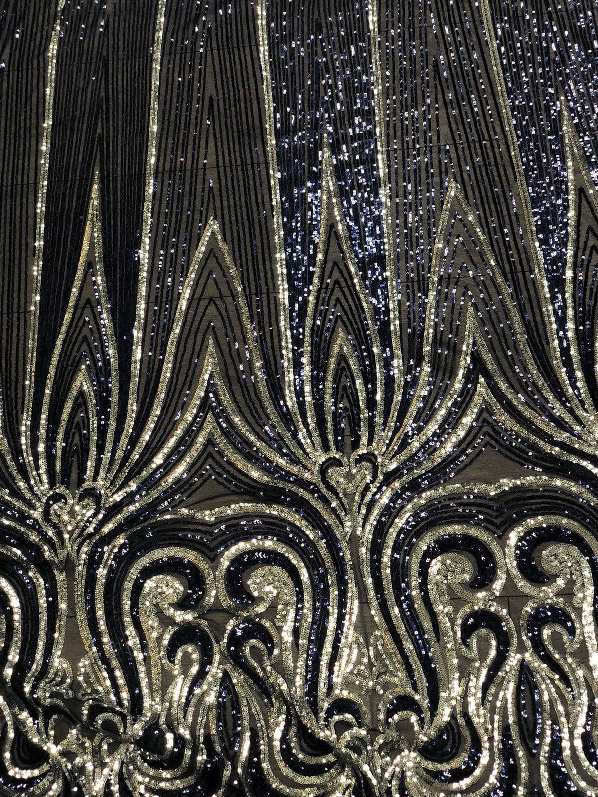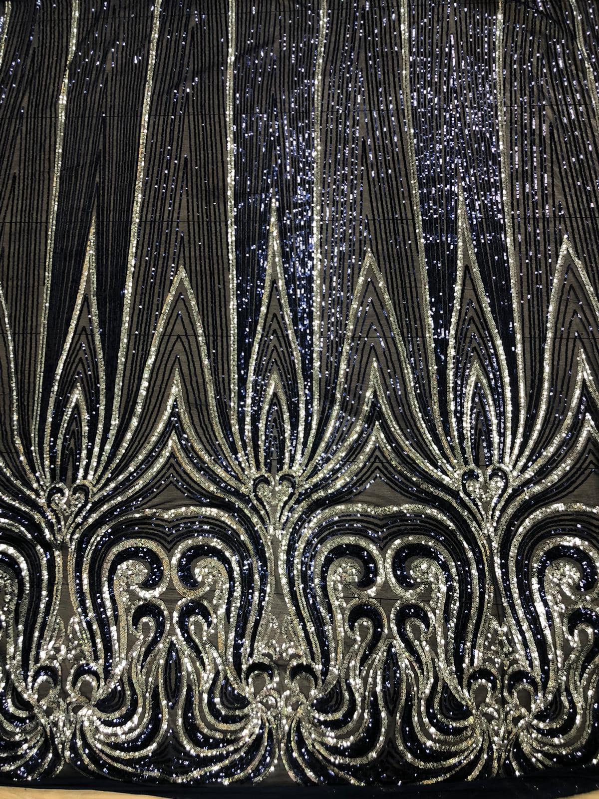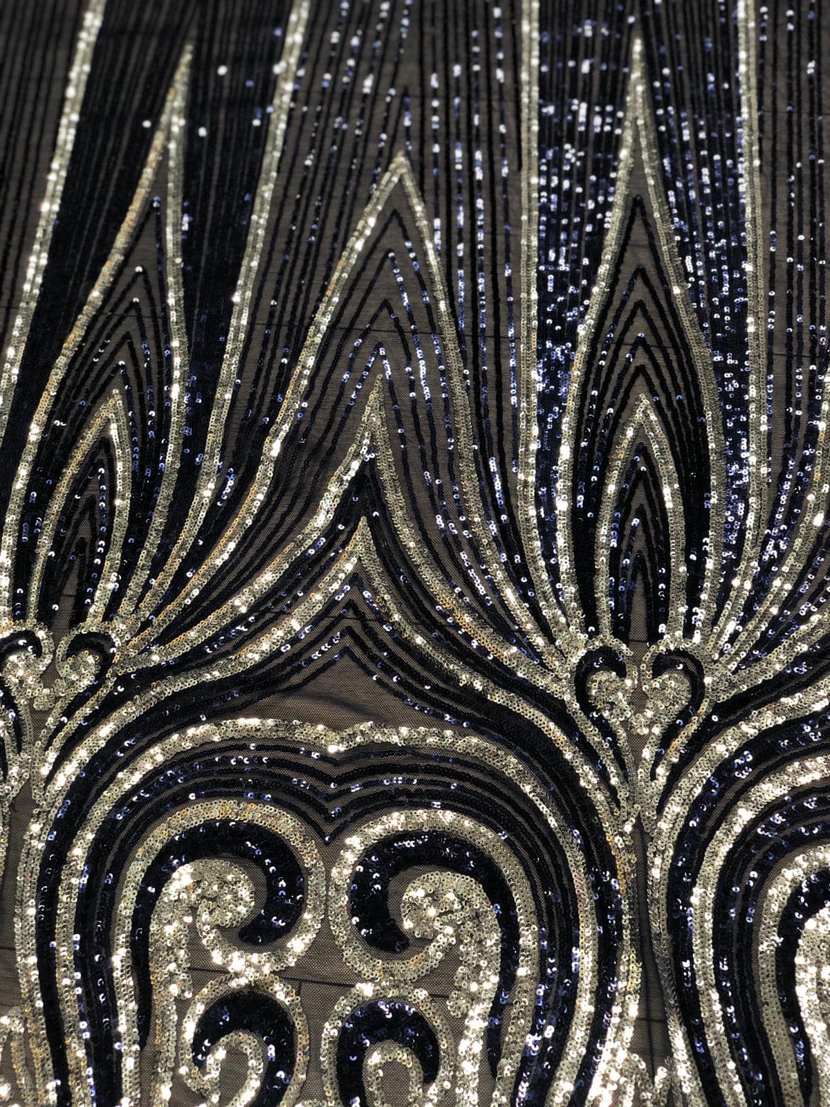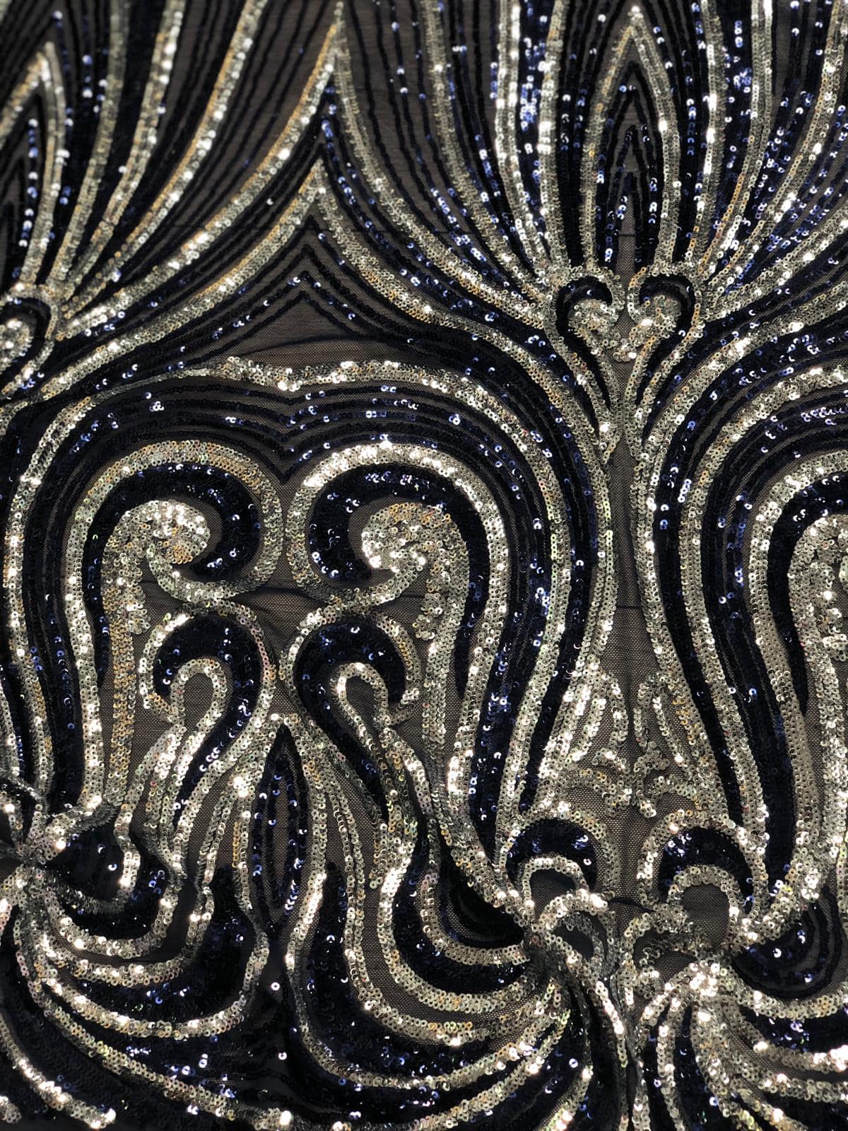 Tulle bi-elastic cu paiete bluemarin si argintiu