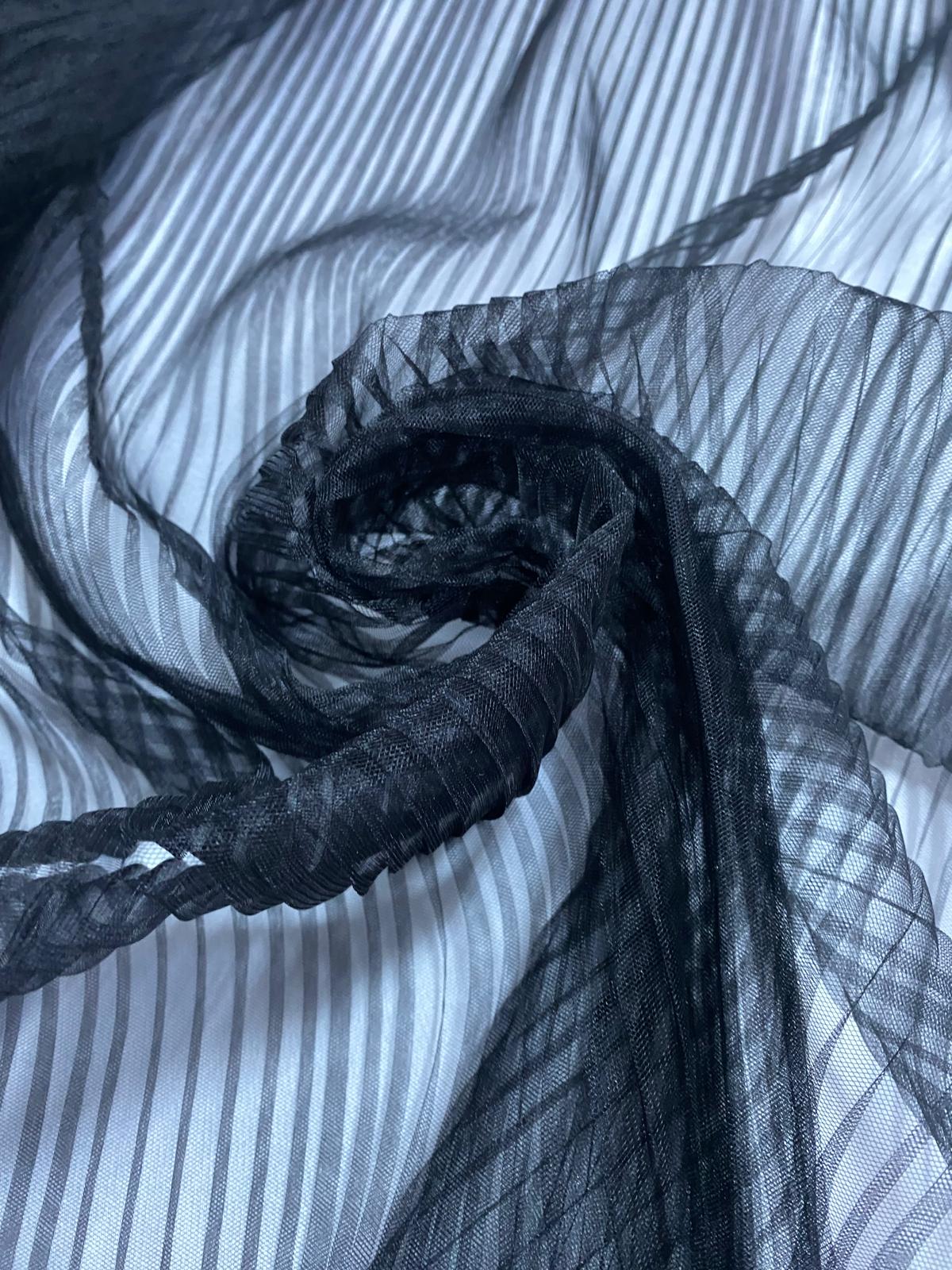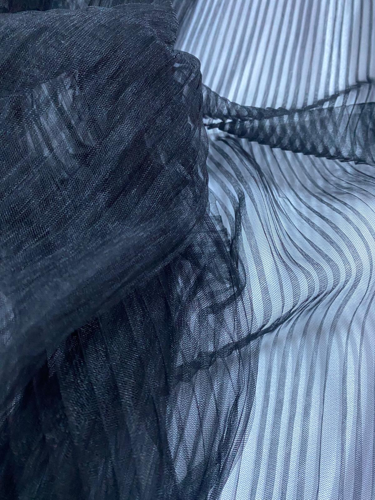 Tulle-ul plisat este un material delicat , usor si transparent , cu pliuri fine si regulate care adauga volum si rafinament oricarui proiect de design .